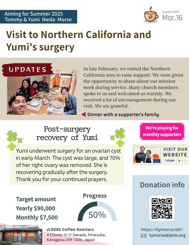 Please also see the report on Yumi’s activities => Soul Care Ministry March Announcement